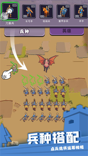 步兵、弓兵、骑兵、斧手等多元兵种汇聚,以精妙策略搭配不同阵容,于帷幄之中决胜千里,方显胜者风范!