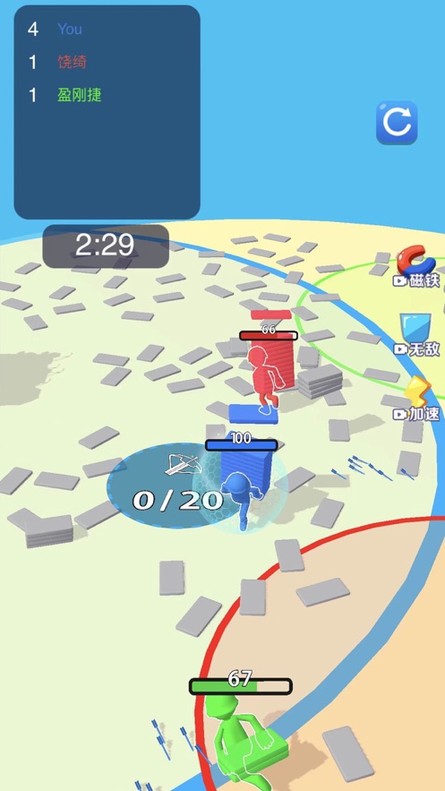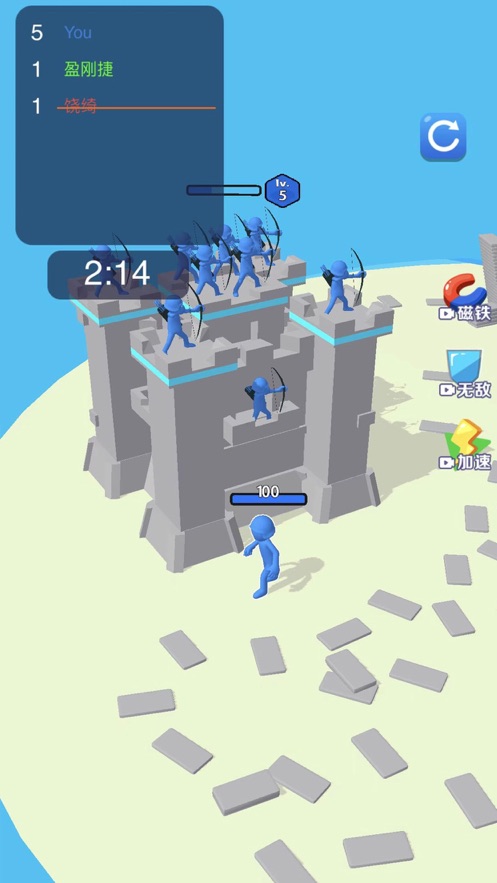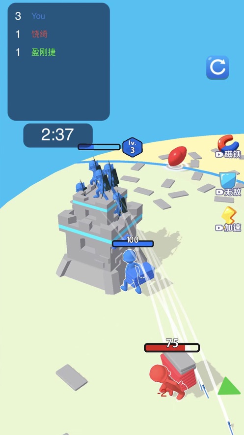 1. 玩家仅需轻点屏幕,就能收集到更多砖块,凭借自己的双手搭建出最为坚固的防御塔。