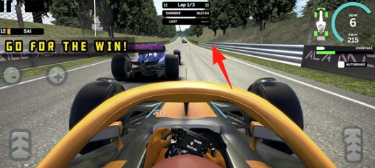 2、采用第一视角驾驶,目光锁定【箭头】所指的赛道方向,始终保持高速行驶状态,全力追击前方的车辆。