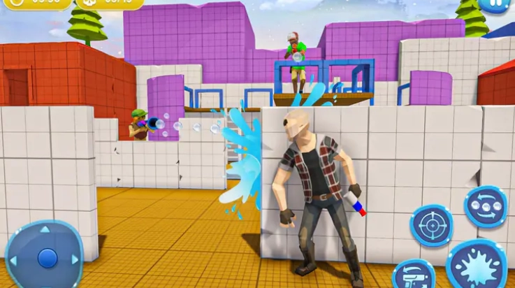 2、玩家操控巨型水枪射出趣味十足的水球,感受别具一格的射击体验,进一步烘托游戏的欢乐氛围。