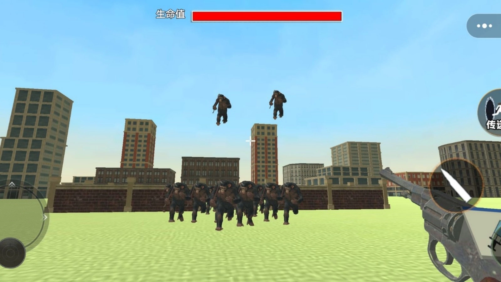 3.如下图,在“传送模式”中,玩家需要利用传送门来躲避猩猩的攻击,并将其给全部歼灭。