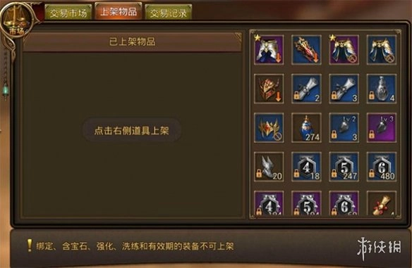 2、玩家能够把获取到的非绑定装备或道具放到市场上进行售卖。