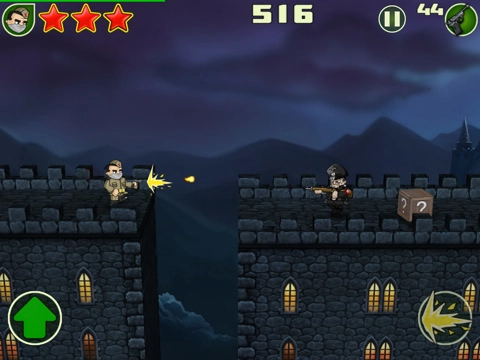 《胜利进行曲》是一款以战争为题材的动作射击游戏,采用2D卡通画风营造战场氛围。该游戏移植自MAC平台,玩家能够选择扮演苏联或美国士兵,在跑酷闯关的过程中运用各类武器歼灭纳粹敌人。简洁的触屏操作与丰富的武器系统相结合,既具备跑酷游戏的畅快节奏,又融入了射击游戏的策略性,十分适合喜爱快节奏动作游戏的玩家尝试体验。