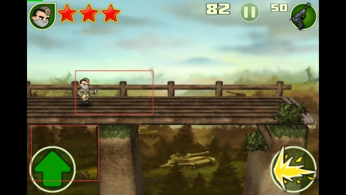 2、操作机制简单易懂:左下角的按钮负责控制跳跃动作,右下角的按钮用于进行射击操作,采用双手持握设备的方式操作会更加流畅,即便是游戏新手也能够迅速上手。