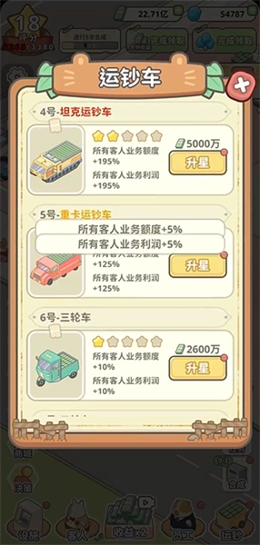 2、升级建设钱庄,吸引新的顾客前来。
