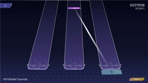 2、「DRAG」:在音符到达判定线时用手指滑动接住。