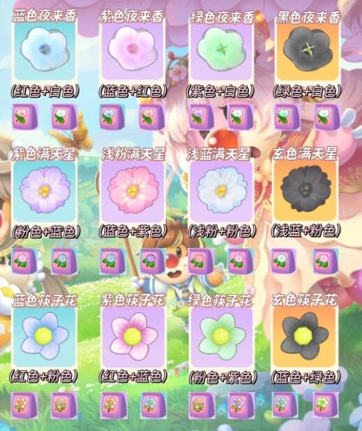 2、紫色夜来香=蓝色夜来香 +粉色夜来香