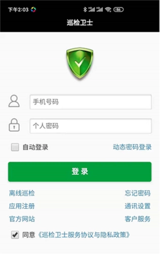1、请点击应用图标,打开巡检卫士的登录页面: