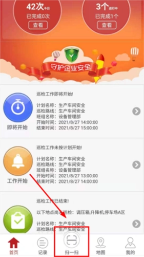 点击主界面下面中间的【扫一扫】图标按钮,扫描巡检点上的二维码: