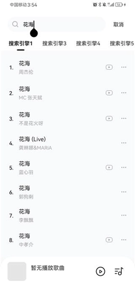 2、输入歌名进行搜索,可切换多个搜索引擎