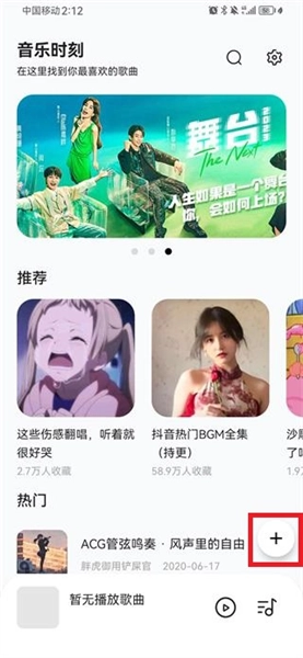 1、安装音乐时刻,进入,点击主页的“+”号