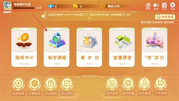 1、进入软件主页面,点击教学课程,进入教学课程页面。