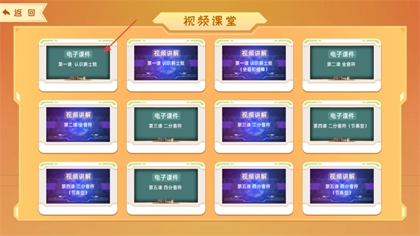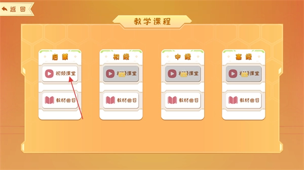 2、在教学课程页面,找到启蒙分类,点击其中的视频课堂选项,即可进入视频课堂页面。